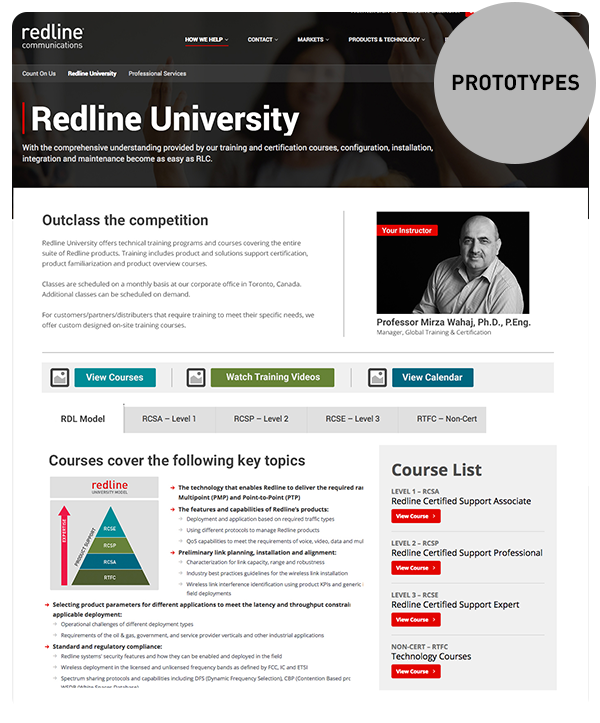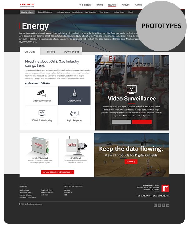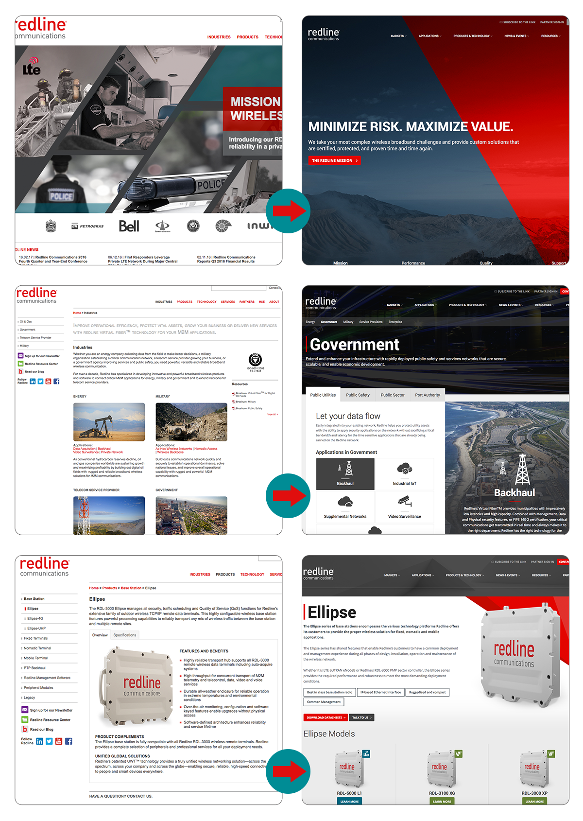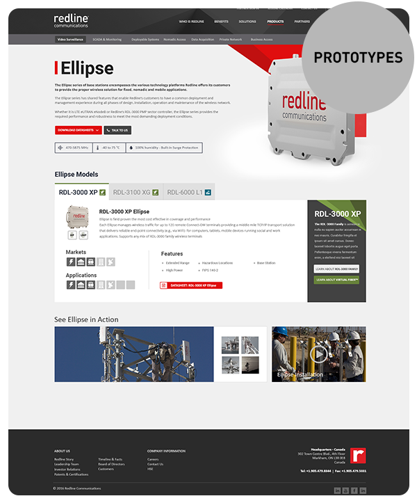 This project started as a basic design refresh of the website but we soon came to the realization that this was leading us to solve strategic marketing issues that the company was facing. It came at a time when Redline was changing the way it wanted to be portrayed to the customer. The idea was to sell wireless solutions as opposed to just products and they wanted to increase their market reach.